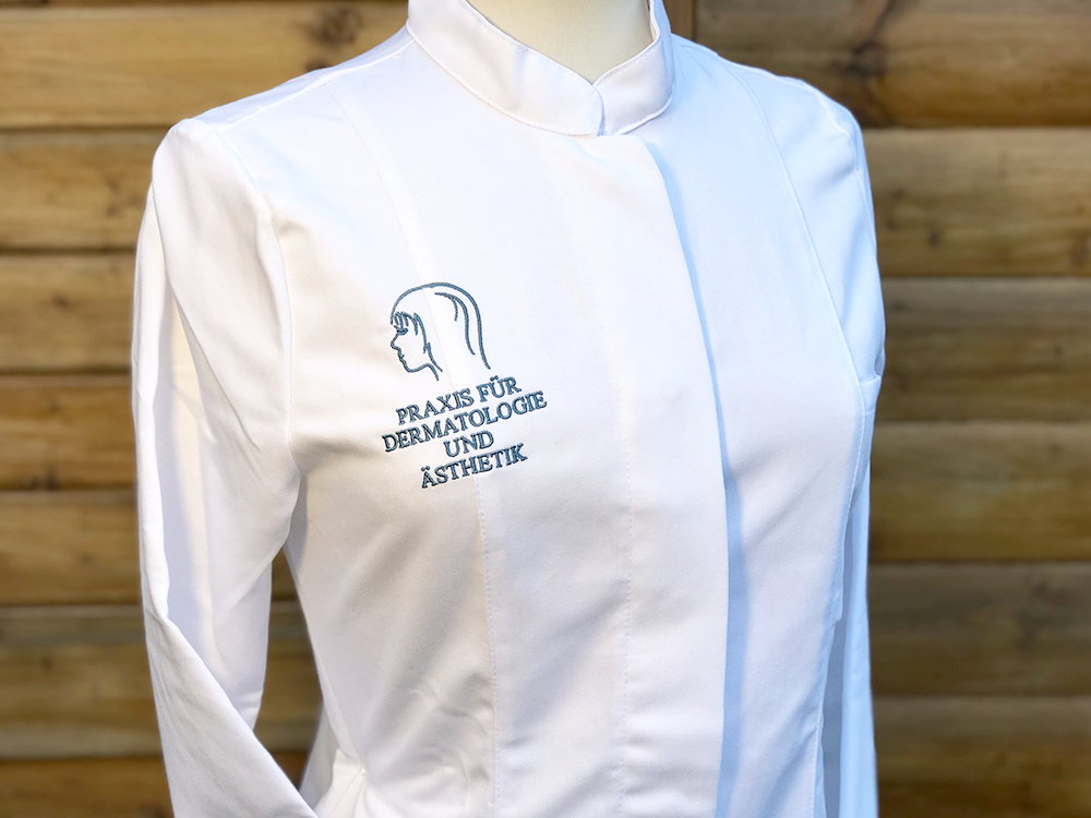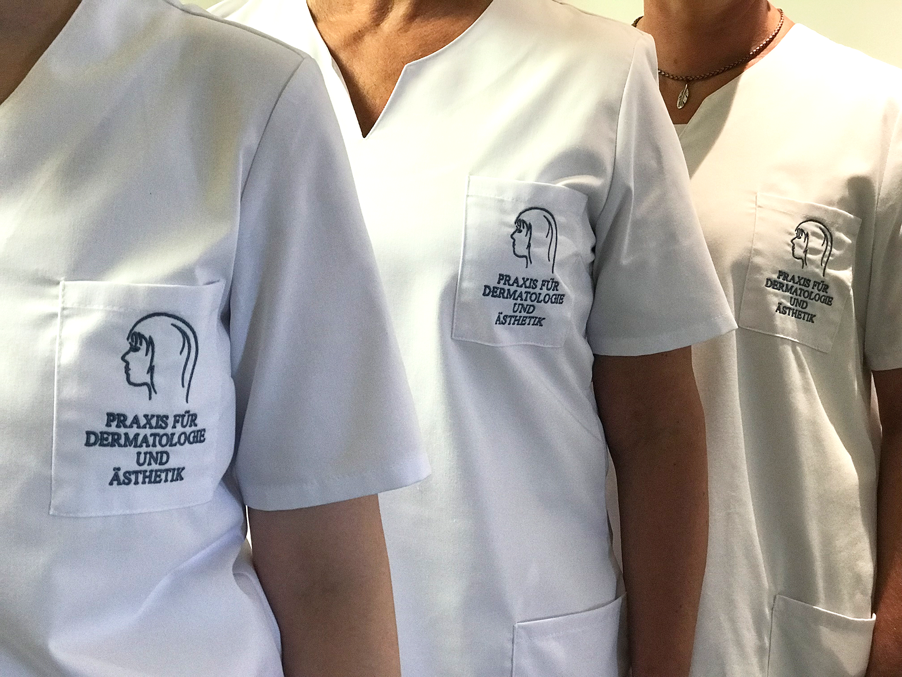 Bestickte bzw. bedruckte Praxisbekleidung wirkt edel, wertvoll und stellt optisch den Zusammenhang des gesamten Teams dar.
